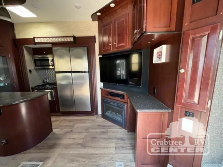 Get started with 12' of garage space including a rear ramp door for ease of loading and unloading. There is also a side man door into the cargo area if you need to check on things while on the move or after the rear ramp door is closed. There is also an additional loft space in the front of the cargo area and a convenience half bath too.Inside the 425 combined living and kitchen area you will find a spacious retreat. There is a center island bar plus a double kitchen sink. Behind the island is a slide out three burner range, plus a refrigerator and pantry for all of your cooking and food prep needs.Enjoy watching television from anywhere in the room with a corner flat screen TV, extra counter space to be utilized as a desk, and cabinets above.Just inside the main entry door you can step up to a side aisle bath and front bedroom. The bath features a toilet, sink and sunken tub. The private bedroom in front feature a slide out king size bed, a front wardrobe with sliding doors, and a large dresser for even more storage, plus a TV mounted on a sliding bar.*****Important Information*****