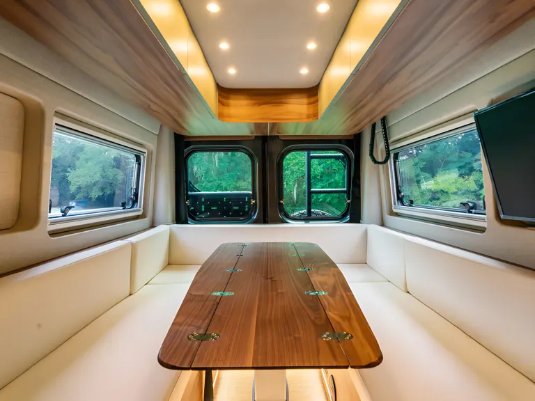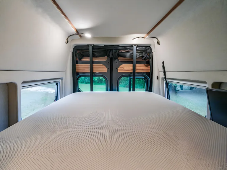 Your furry friend is welcome aboard this modern, fully equipped van for adventure.