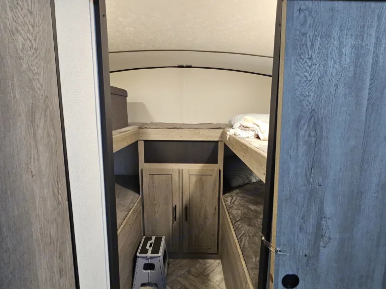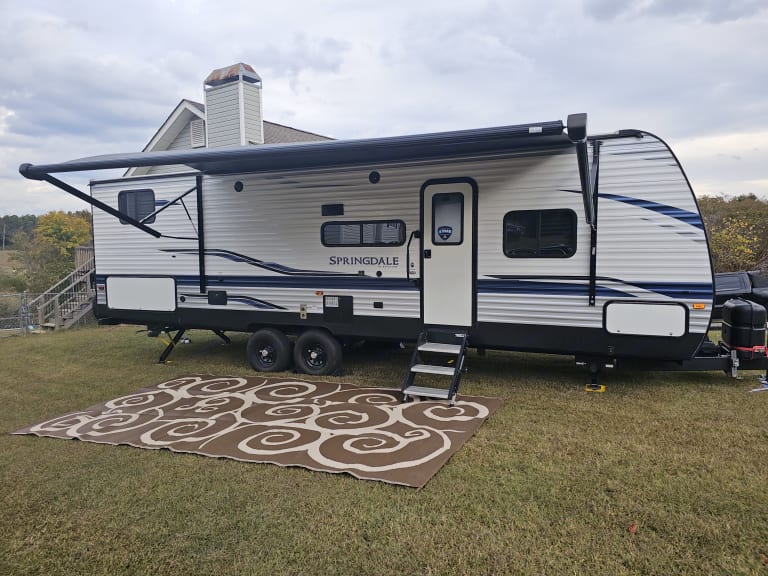 Welcome to our listing! We are Tyler and Kayla, and we hope you are as passionate about camping and making memories as we are. Along with our two kids, we have made so many memories in this camper and we hope to be able to share it with you. Be sure to view the floor-plan to get a detailed view of the layout.Room for Everyone: Our Keystone Springdale 298BH can comfortably accommodate a group of friends or family. Featuring a master bedroom with a plush queen-sized bed, a cozy bunkhouse with multiple sleeping options, and a convertible sofa and dinette, you can sleep up to 8 people in total comfort!Gourmet On-The-Go: The fully equipped kitchen includes a spacious refrigerator, a microwave, a three-burner stove, full size sink, and ample counter space. An outdoor two-burner stove and mini refrigerator make outdoor entertaining easier than ever.Relaxation Central: Sink into the sofa or dine at the convertible dinette - both of which offer ample seating and entertaining space. And for those evenings when you just want to kick back, the TV and sound system have you covered. Feel free to connect your phone or tablet to the indoor/outdoor speaker system via Bluetooth.Comfortable Every Season: With thermostat-controlled AC and gas heat, you are sure to stay comfortable. The indoor electric fireplace/heater can be used if that's more your style. We also include two electric space heaters so you can add a little more direct heat on those bitter cold days or feel free to use them outside.Convenience Matters: Inside is a full bathroom with a shower, sink, and toilet, making freshening up a breeze. An outdoor sprayer makes rinsing off yourself, toys, or dishes no problem.Delivery and Setup: To make your experience even more seamless, we only offer delivery and we set up the camper for your convenience. We take care of everything, that way, you don’t have to worry about anything except enjoying your time camping.