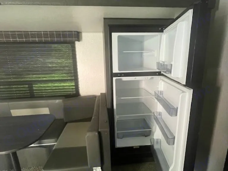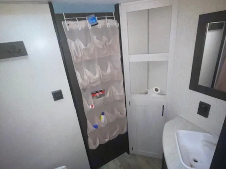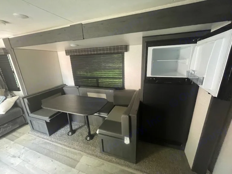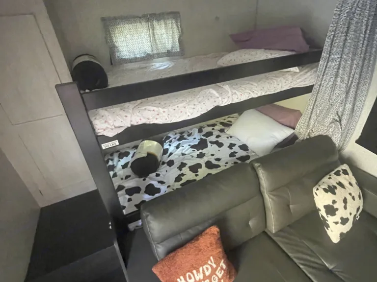This camper is great for a family that needs sleeping space for 7 or a group of friends that enjoys camping together! Murphy bed folds out from couch comfortable great sleep for 2 adults. There is a set of bunk beds in the front living room. The bathroom separates the master bedroom for convenience and privacy, and the dinette slide out offers dining and sleeping space, plus extra floor space for all to move about the trailer. Length: 32.58' | Weight: 5780.0 lbs | Slide Outs: 1 | Sleep Number: 7 | Exterior Height: 10.67' | Fresh Water Tank: 45.0 gal | Black Water Tank: 32.0 galAlso Includes: * Electric Patio Awning * Grab Handle * Front & Rear Stabilizer Jacks * Spare Tire * Outside Shower * Double Door Refrigerator * Microwave * Oven * 3 Burner Stove * Hide-A-BED Sofa * Booth Dinette * Dual Ducted AC * Double Bunks * 1 Slide OUT * TV * 50 AMP ServiceWhat's included• towels
