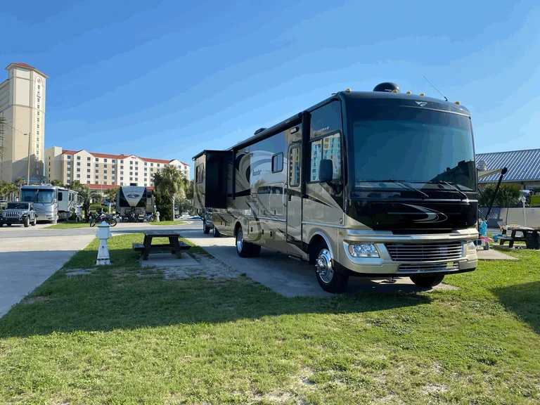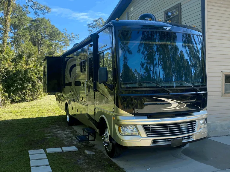 Firefighter owned, meticulously maintained and beautiful Class A RV with lots of bells and whistles! Outfitted with "Safe-T-Plus" steering stabilizer, this RV is incredibly easy to drive. Crimson Thunder boasts upgraded furniture that is comfortable, beautiful and easy to clean. Private master bedroom has a king size bed. It even has a washer/Dryer! Couch can sleep two and dinette can sleep one or even two small children. Front driver/passenger seats are so comfortable and passenger seat is a recliner! Two slide outs to include master slide and large living area slide. This coach has 3 TV's- including one outside. All of which are ready for your streaming device. This coach is perfect for your family, or even a couple's getaway. There is also the option of staying right where it is parked- in beautiful Bonita Springs, Florida!! Feel free to contact us for any questions. Happy Camping!!!