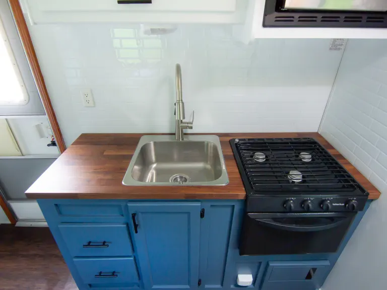 Do NOT use solvents, or strong cleaners anywhere in the RV. Baby wipes are okay to wipe up messes or mild soap and very little water if needed.