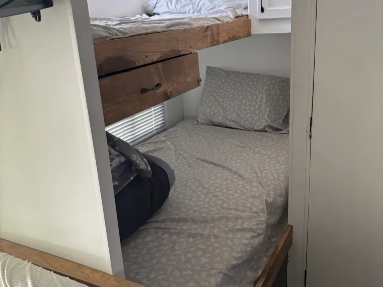 Your location is done on a case-by-case basis.Enjoy our cozy Glam-per for a family getaway. Inside you will find a separated a queen sized bed, dinette, full sofa bed, full kitchen, full size bunk bed and regular size. The bathroom with tub/shower combo.What's includedRental includes included: