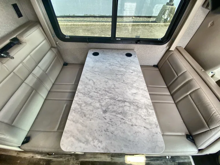 Spacious queen size bed in the back, over the cab double bed as well as a dinette that converts into a bed sleeps 5 comfortably (or 4 adults 2 kids) to fit your family.