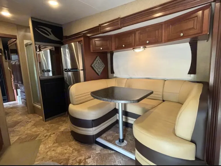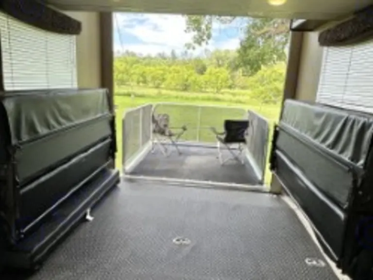 Experience the ultimate adventure with our spacious and versatile 2016 Thor Outlaw 37RB Toy Hauler RV! Perfectly designed for those who love to blend outdoor excitement with the comforts of home, this RV is your gateway to unforgettable journeys. Key Features:Spacious Living Area: The open floor plan provides ample room for relaxation and entertainment. Enjoy the cozy seating area with multiple flat-screen TV and a premium sound system, perfect for movie nights after a day of adventure.Fully Equipped Kitchen: Whip up delicious meals in the well-appointed kitchen featuring a refrigerator, three-burner stove, microwave, and ample counter space. Enjoy dining at the expandable table that comfortably seats your family and friends.Comfortable Sleeping Arrangements: The Thor 37RB comfortably sleeps up to 9 people, with a master bedroom featuring a queen bed, a convertible sofa, and a loft hideaway above the garage area. The garage area boasts a king bed that folds away when you are hauling your toys!! Everyone will have a cozy spot to recharge for the next day’s adventures.Toy Hauler Garage: With a spacious garage area, you can easily store your toys—ATVs, bicycles, or any outdoor gear. The garage also converts into additional living space with its own foldable seating/bed, making it perfect for gatherings or additional sleeping space with its own heat/airModern Bathroom: The bathroom features a shower, toilet, and sink, providing all the amenities you need to feel at home.Outdoor Enjoyment: Take advantage of the outdoor patio area with an awning and outdoor tv, perfect for enjoying the fresh air and beautiful views. The exterior also includes ample storage compartments for all your gear.Convenient Generator: Equipped with a generator, you’ll have the power you need, whether you're camping off the grid or at a full-hookup site (Additional generator hours apply)Additional Details:Pet-Friendly: Bring your furry friends along for the adventure (upon approval).