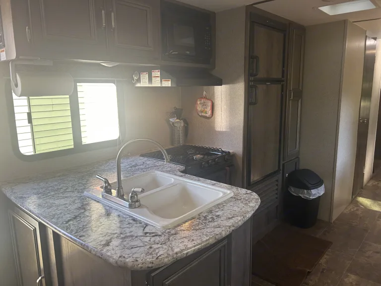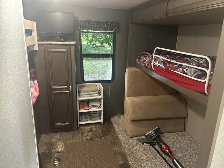 Our spacious, family owned camper is the perfect home away from home for your next adventure. It features a private bedroom with a queen bed, a bunkhouse with four bunks, plus a sofa and dinette table that convert into extra sleeping spaces, comfortably accommodating the whole family. The fully equipped kitchen includes a refrigerator, freezer, oven, stove, and microwave, making meals on the road easy and convenient. You’ll also enjoy the comfort of running water, a full bathroom with toilet and shower, and plenty of room to relax after a day of exploring. For outdoor living, we provide four camping chairs, a beach umbrella, and a small Blackstone griddle perfect for cooking, lounging, and gathering. Whether you’re planning a weekend getaway, a family camping trip, longer vacation, or a work event this camper has everything you need to enjoy the outdoors without giving up the comforts of home.