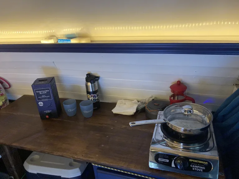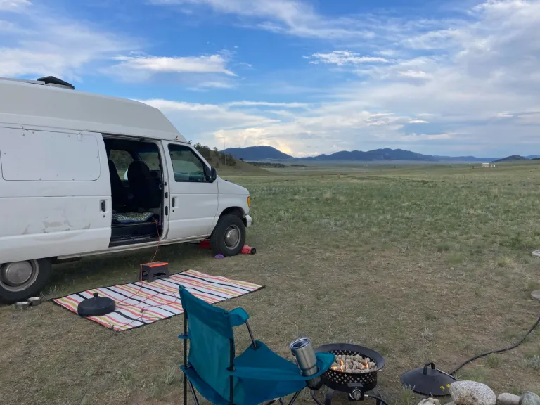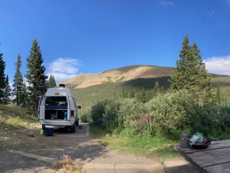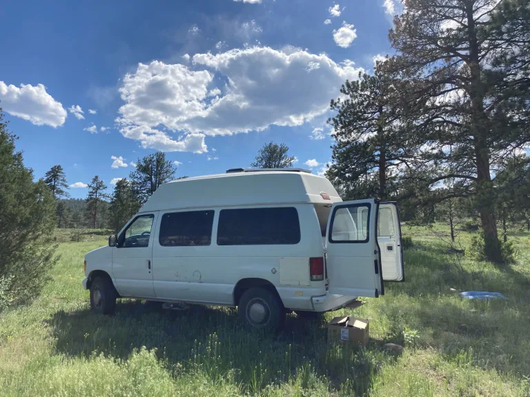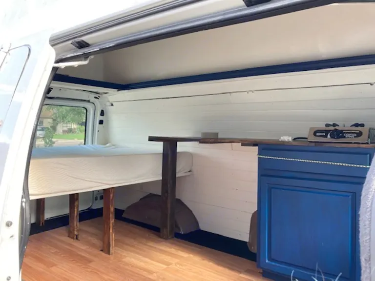 This clean vintage renovated box van is a solid upgrade from tent camping! Small enough to pull in and out of camping areas easily, and big enough to spend time inside and stand up! Awesome for all types of weather! It has a propane single burner inside and plenty of space to hang out or accommodate an additional air mattress or cot. With solar power there are multiple places with USB outlets and an additional auxiliary outlet. Plenty of space for storage. Cooler, dishes and pans available if needed. Comes with table and chairs, linens. Not far from the foothills. Available for drop off. There is no air conditioning in the vehicle, but it is great in high country!This van also has a State Park pass affixed that is available all year!What's includedFresh Linens, cookware and utensils, cooler, Coffee pot and plenty of storage space.