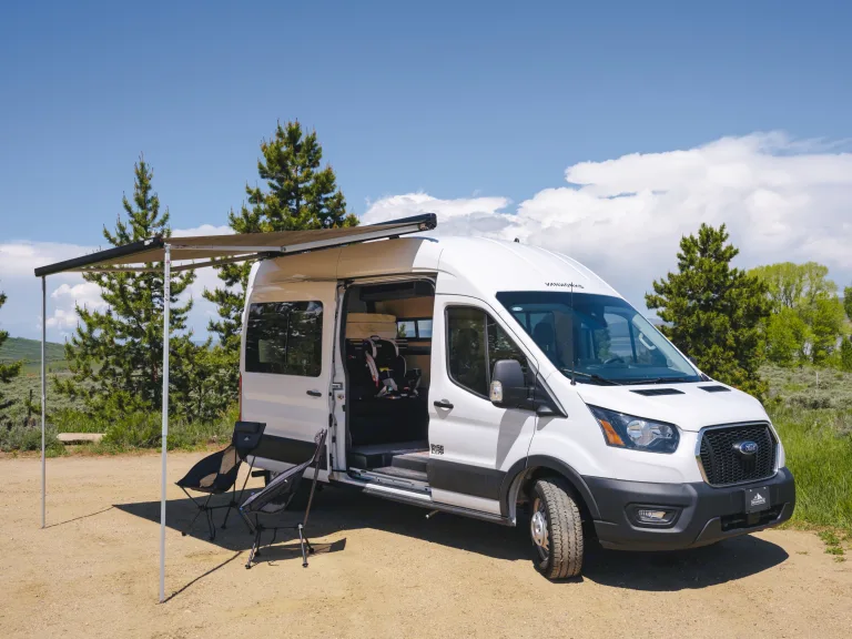 Bertha IS A Family-Friendly, Backcountry Beast!Bertha is a Ford Transit camper van, custom built by Vanworks to be the perfect road trip vehicle for your family or group of friends. This 2023 van is fully stocked with everything you need, so all you’ll need to do is grab your food, clothes, and your sense of adventure, then hit the road.Bertha comfortably seats and sleeps four people. Enjoy a restful night’s sleep on the queen mattress after a day of fun in the great outdoors. The back bench seat folds down to make a second sleeping space under the queen bed. The two front seats swivel, so you’ll have a great place to hang out and sip your morning coffee, tea or hot chocolate.Bertha’s kitchen makes cooking a breeze, with a built-in sink, stove, easy-to-access cooler-style fridge, and all the cookware and tableware you’ll need to make your favorite camp meals. If roughing it isn’t your idea of a vacation, this van turns camping into glamping with an outdoor shower and portable toilet.Other amenities include:- Bedding, including sheets, blankets, and pillows