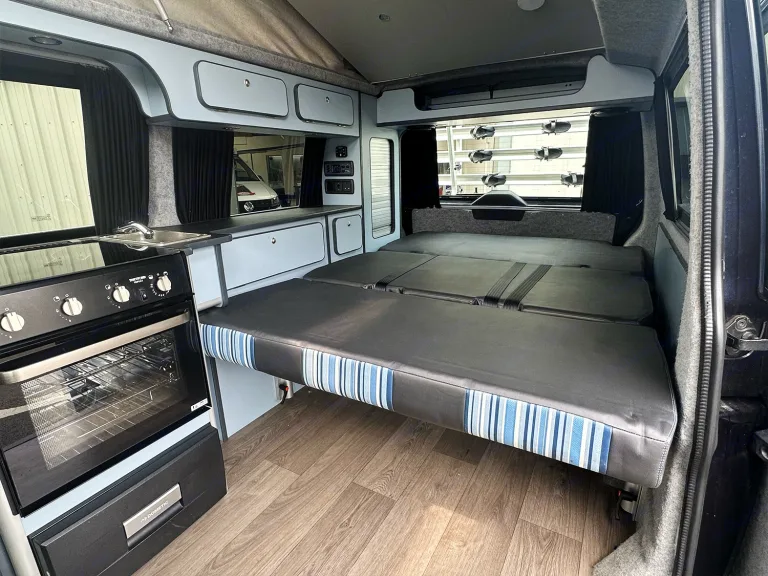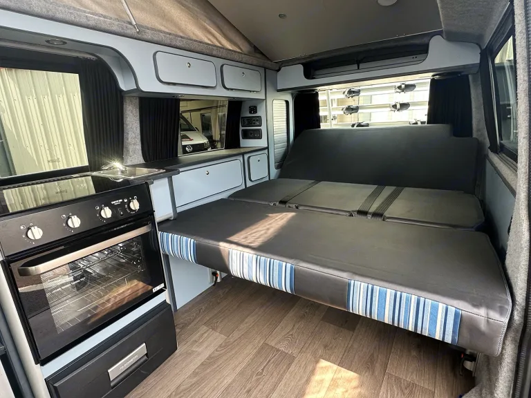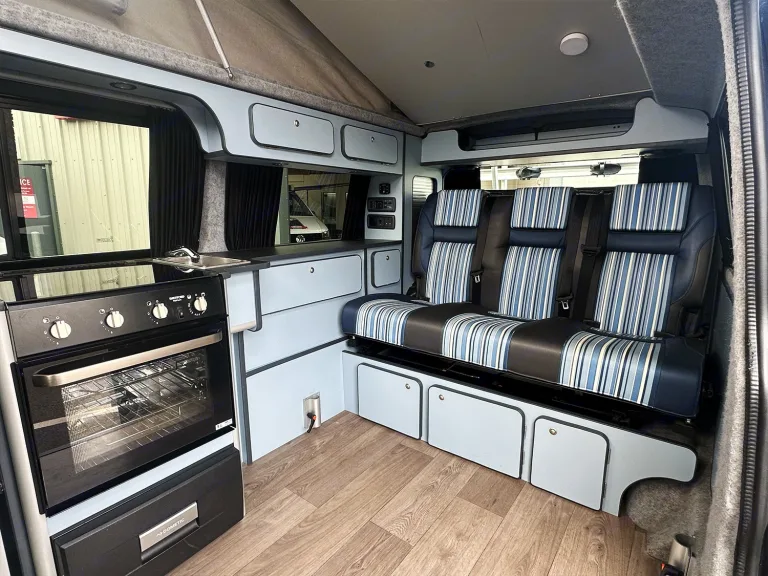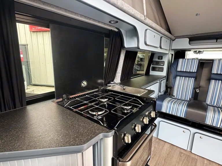 Prepare for unforgettable family adventures with Moonlight, our stunning CamperKing Portofino conversion. Midnight is designed for families who crave generous space, effortless travel, and refined comfort on the road.This automatic, Long Wheelbase (LWB) campervan offers expansive living areas, perfect for everyone to relax and enjoy the journey. Inside, the Portofino's sophisticated finishes provide a sleek and modern sanctuary, complete with a full oven and hob for all your family cooking needs, ensuring every trip feels luxurious and convenient. Midnight's striking Starlight Blue exterior and elegant design make it a true head-turner, standing out for its refined family appeal.If you're looking for a campervan that combines elegant style with ample room and excellent cooking facilities for the whole crew, Midnight is your perfect co-pilot for an unforgettable journey across Scotland and beyond.