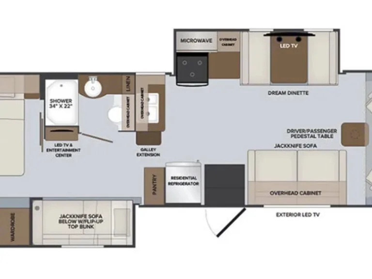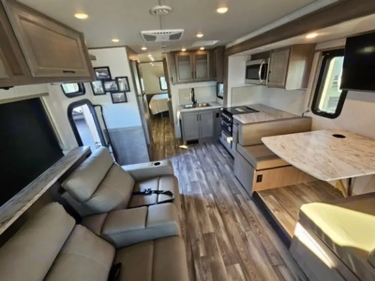 The 2024 Admiral by Holiday Rambler offers both comfort and glamour. With a King size master suite, kids bunk area, and a loft queen bed, this RV provides sleeping for up to 7 guest comfortably. Enjoy watching movies on one of the 3 indoor smart tv's on rainy days, or catch the big game while sitting by the fire on the large outdoor tv. What's included• The RV is furnished with a fully stocked kitchen for enjoying meals