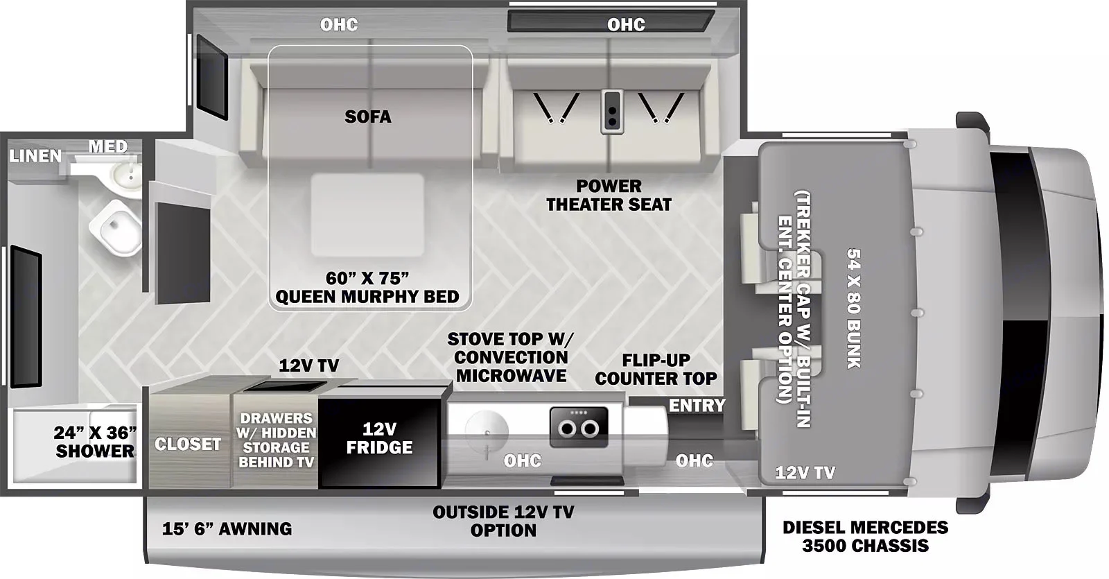 ➜ Fully Loaded - Kitchen, LED lighting, Refrigerator, Freezer, Microwave, Stove Top, Oven, Air Conditioning, Heater, Full Bathroom With A Shower, Flat Screen TV, Upgraded Stereo With Speakers Inside & Out.