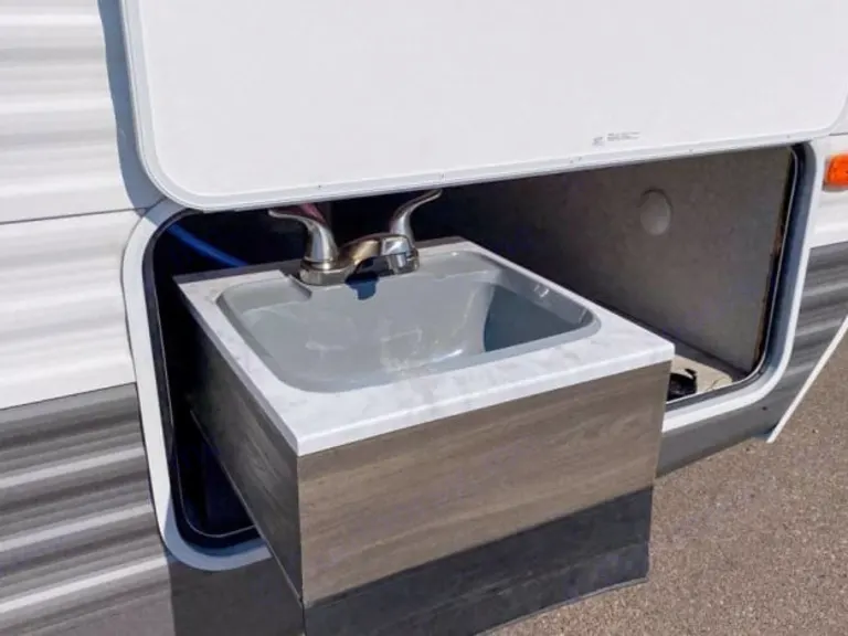 This tank is used to empty the black or grey water tank when the sewer hookup is off site. We recommend this add on when your stay exceeds 3 or 4 days.