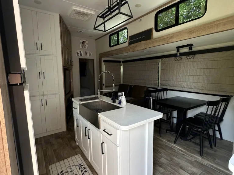 Spacious 40-Foot Modern 5th-wheel RV – Your Home Away from Home in Nature. **Pet-friendly**Escape the ordinary and enjoy the perfect blend of comfort, style, and adventure in our beautifully updated 40-foot RV. Whether you’re parked at a scenic State Park or another breathtaking campsite, you’ll have all the luxuries of home with the beauty of the outdoors right outside your door.Features & Amenities:
