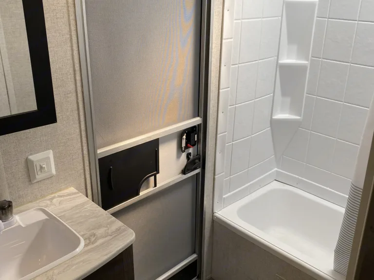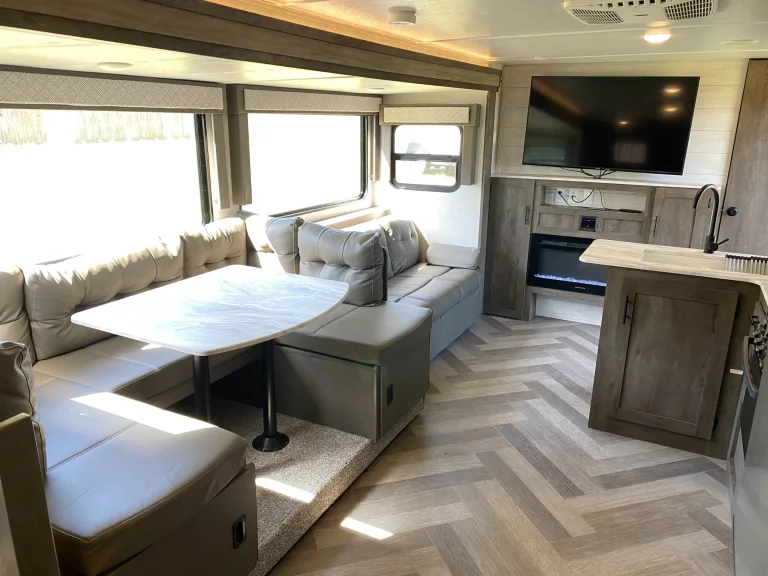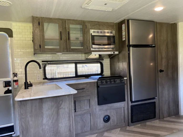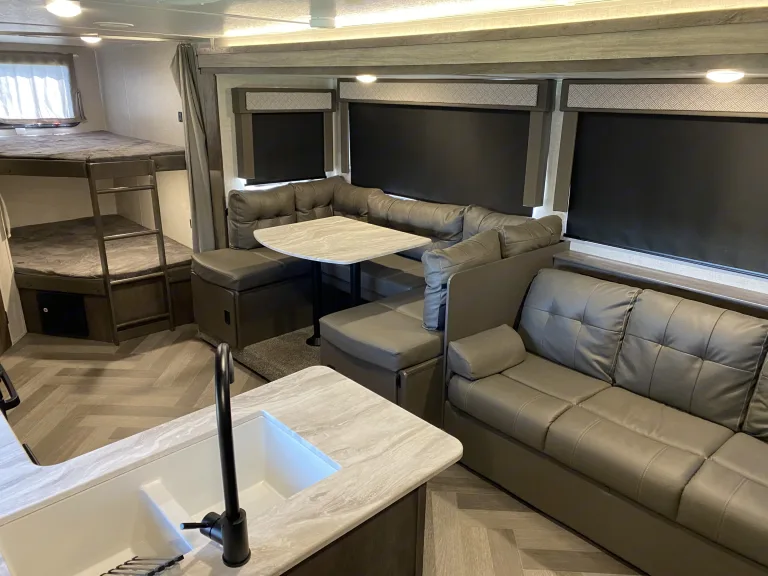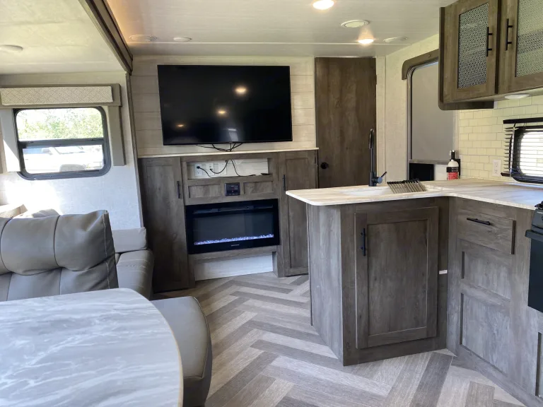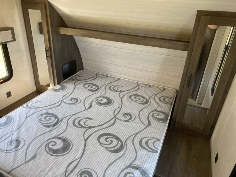 This camper looks brand new! Used very little and always kept under a carport. The oversized bunk beds are perfect for kids, but can fit grown adults too. Queen bedroom in the front with a door. It is very spacious with the super slide out and has an outdoor kitchen for easy access to mini-fridge and grill. LED lighting under the awning, indoor/outdoor speakers and tons of storage space. The back door goes to the bathroom which is nice in case you have kids sleeping or just don't want to go through the camper every time. I'm located in Lindale and can deliver within a 60 mile radius. Thank you and I hope to get you camping soon!Other things to noteNo smoking.