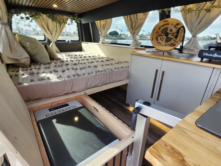 This isn’t your typical “mattress in the back” van. This is a fully outfitted micro-apartment on wheels, packed with premium touches, clean lines, and everything included to make your getaway effortless and cozy.
