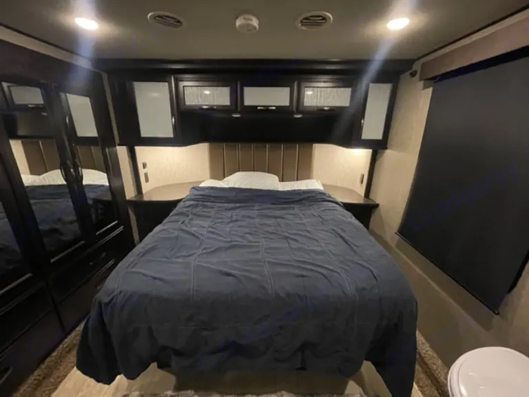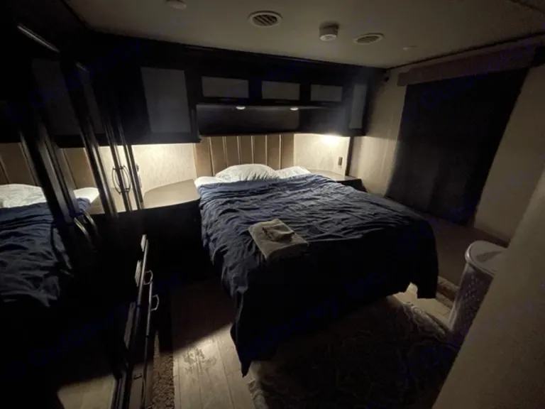Highly desirable RV rental. No camping experience necessary! Sleeps up to 7 people and still have plenty of room for your items. Luxuries include indoor fireplace, full-size refrigerator, stove/oven/microwave, 2 AC units, outdoor TV, coffee pot and upgraded 10' sunshades to provide a great outdoor environment. Master bed has an upgraded mattress topper for added comfort. Canvas chairs and outdoor rug included in rental for comfortable outside seating. Toy hauler/back opens up into an elevated patio for all the best views.The only thing missing from this rental is you!
