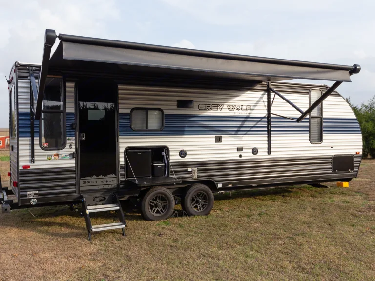 The 23MK is a touring unit perfect for your family. Enjoy the huge U-shape dinette situated in the slideout for dining, and additional sleeping for 2 adults. A rear sofa is positioned for comfort and TV viewing. The modern chef’s kitchen has the right combination of functionality and storage with a full-size pantry. A huge bathroom leads into a private master suite with a queen bed. Outside, enjoy the Cherokee camp kitchen, exterior TV bracket with speakers, and power awning.Here is what we include for your comfort:-In the Kitchen: pot and pans, coffee maker, coffee filters, cooking utensils, cutting board, measuring cups, strainer, utensils, plates, bowls and cups, knives, scissors, bottle/wine opener, can opener, fresh towels, dish soap, hand soap, trash bags-Bathroom: fresh linens, hand soap-Bedding: fresh linens, pillows, extra blankets-Misc Items: broom/dust pan, first aid kit, lighterOther things to note:-Friday and Saturday nightly rentals are an additional $10/night.-Pick-up time is between 9am-11am.