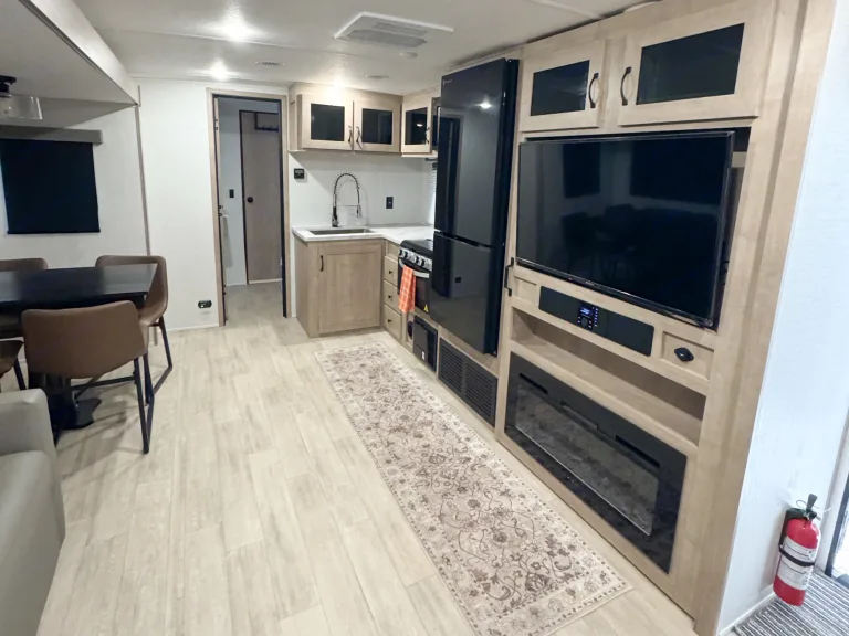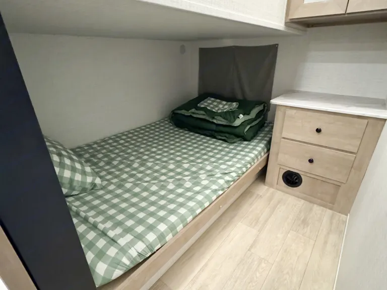 3150Tbss - light enough to tow with a standard pickup truck and select full size SUV’s! Easy set up with the electric jack system, this camper has it all. My favorite part is the separate bunk rooms, perfect for keeping the kids separated and happy. Ample storage, 43” TV, full size shower, memory foam mattress and so much more.A Hensley anti-sway hitch has been installed. Vehicles above stock vehicle height will not be eligible for self pickup/return. Delivery will be required. What's included• Air fryer