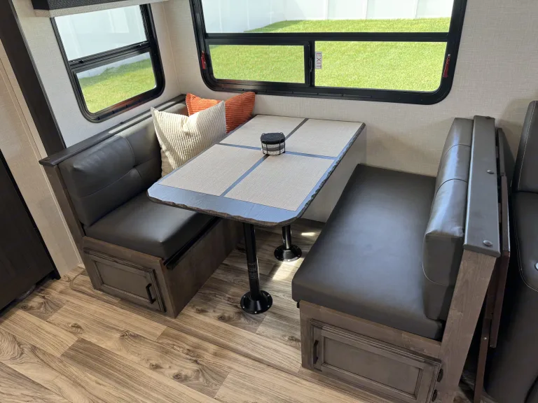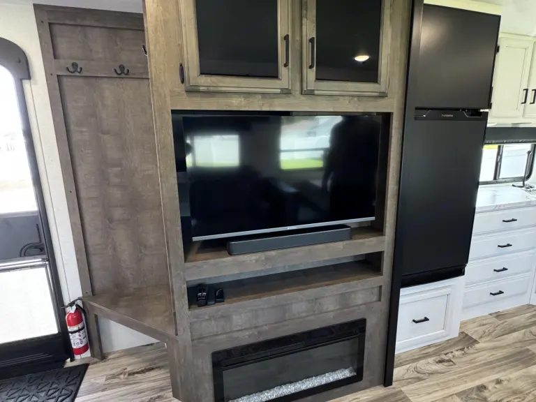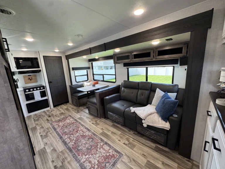 *Convenient for Horse Show Event/Gainesville, FL adjacent*Experience our cozy but spacious, home away from home, luxury 33’ RV with 1 slide that sleeps 5. Perfect for small families (fur babies included) looking for a space to unplug and enjoy the simplicities of life.The SpaceSleeping space includes 1 queen-sized bed in the master bedroom, a 42” dinette in the main living area that transforms into a sleeping space for guests, along with a 70” reclining sofa for lounging equipped with heated and massage seats. Kick back and relax in front of our fireplace entertainment center with a 40” smart TV and soundbar for your family movie nights.Well equipped kitchen includes a vast amount of storage with a walk-in pantry, silverware, dinnerware, cooking utensils, pots/pans, minimal small appliances (microwave, keurig) and few spices. Easily prepare your meals with a three burner stove, oven and take it up a notch with our attached outdoor campfire café that houses a griddle, sink, and mini fridge. Some kitchen essentials for your stay include:~ (2) Paper Towel rolls