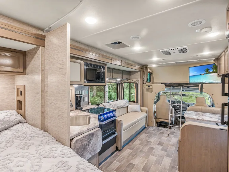 • Optional outdoor entertainment hookups⸻Why Families and Couples Love This RVThe Thor Chateau 27R is made for those who want a luxury feel in a manageable, easy-to-drive RV. The full-wall slide creates a roomy, open interior—perfect for relaxing after a day of travel. Whether you’re dining, watching a movie, or getting a great night’s sleep, every inch of this coach is designed for comfort and ease.⸻Perfect for Weekend Escapes or Cross-Country AdventuresAt just under 30 feet, this coach can fit in most campgrounds but still gives you the space you want on the inside. It’s an ideal choice for first-time RVers, small families, or couples who want to hit the road in style without the learning curve of a larger rig.⸻Why Book with RvFunRental?At RvFunRental, we deliver clean, top-tier RVs with exceptional service. When you rent from us, you’ll enjoy: