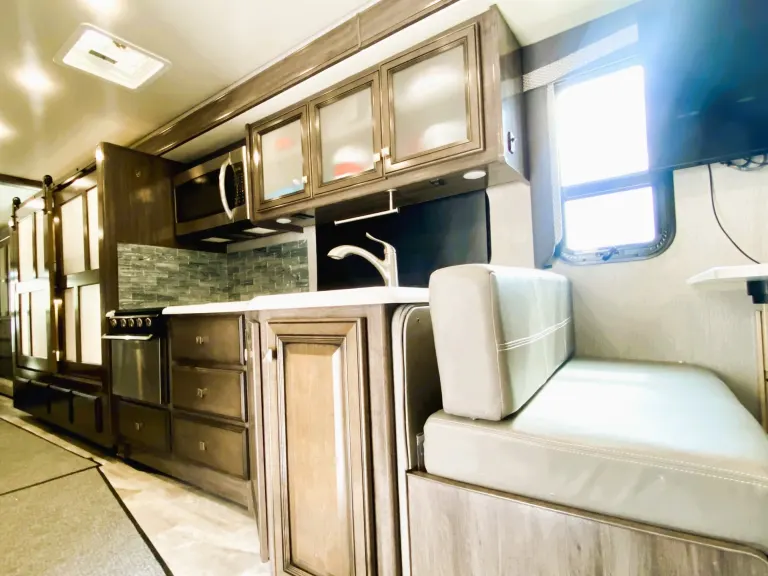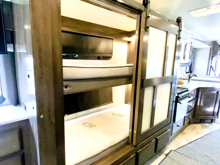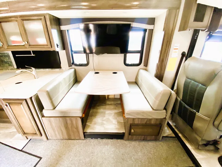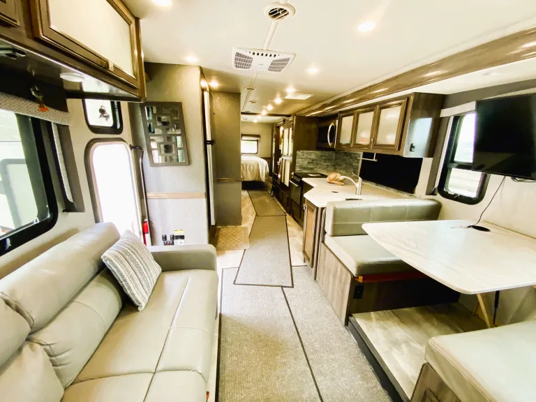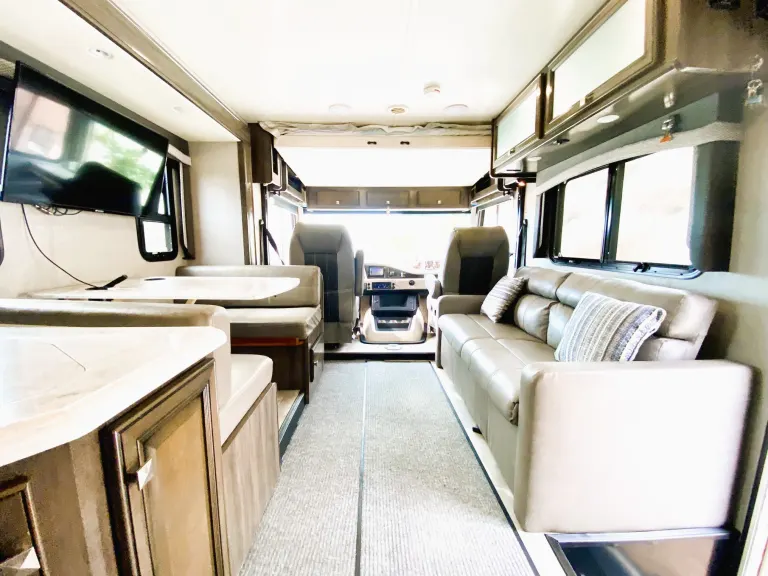Our 2021 Creamy Flair, a Class A motorhome that feels more like a cozy home than an RV. With space for up to 10 people, it’s built for families who want room to spread out and relax. You’ll find a king bed, bunk beds kids love, a drop-down loft, and extra sleeping spots that make everyone comfortable.Driving is easy thanks to the modern Ford V8 engine, backup cameras, and leveling jacks. Park at a beach, a national park, or an RV resort and enjoy the huge slide-out, multiple TVs, full kitchen, and plenty of storage. Reliable, spacious, and family-friendly — the Creamy Flair is ready for your next adventure.