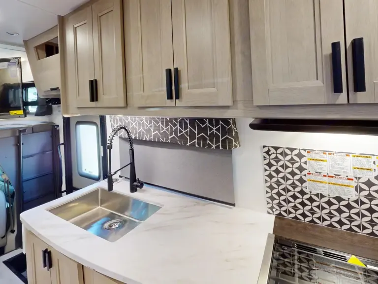 This Sunseeker LE Class C gas motorhome will allow you to travel with your favorite people beside you! You can take a moment to enjoy a fresh cup of coffee in the morning while sitting at the booth dinette or on the sofa, or you can spend a little extra time creating a hearty breakfast in the kitchen on the recessed three-burner range. The 10.7-cubic foot refrigerator will store your cheese and milk, and the convection microwave will heat up leftovers with ease. The separated bathroom leads into the rear bedroom where you will find an RV queen bed with wardrobes on either side, and you can also head outside to enjoy the 15' 6" electric awning with LED lights before bed.