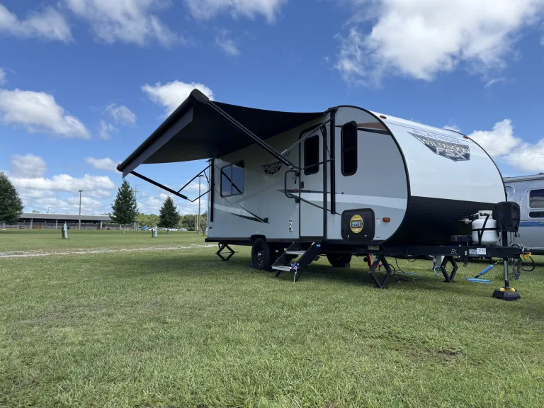 Explore Nature's Beauty! Rent the Forest River Wildwood FSX 161QK PlatinumEscape the hustle and bustle of everyday life and embark on an unforgettable outdoor adventure with the Forest River Wildwood FSX 161QK Platinum. This exceptional travel trailer is now available for rent, offering you the perfect opportunity to experience the wonders of nature like never before!Key Features:- Spacious and Comfortable: The Wildwood FSX 161QKX Platinum provides ample living space, making it perfect for a couple's getaway or small family adventures. With its clever design, every inch of this trailer is optimized for comfort and convenience. A full bathroom separates the main area from the sleeping quarters.- Luxurious Interior: Step inside and be greeted by a tastefully designed interior. The plush furnishings, premium materials, and modern amenities create a cozy ambiance that will make you feel right at home, even in the heart of the wilderness.- Fully Equipped Kitchen: Pre-cool your fridge while you drive with a solar-powered refrigerator/freezer. Prepare delicious meals on the go with the fully equipped kitchen. It features a large refrigerator, freezer, gas stove, microwave, and ample storage space for culinary essentials. Enjoy home-cooked meals amidst the great outdoors!- Relaxation and Entertainment: After a day of exploring, unwind in the inviting living area or retreat to the comfortable sleeping quarters.- Outdoor Enjoyment: Embrace the beauty of nature with the Wildwood FSX 161QK Platinum's outdoor features. A power awning creates a shaded space for relaxing, while the detachable Bluetooth speaker lets you enjoy your favorite music as you soak in the surrounding tranquility.- Delivery Benefits*: We deliver this unit so that you don’t have to worry about any of the minor details or towing the trailer. Setting up camp is handled for you, allowing you to spend more time exploring and less time on logistics.*Due to National Park Service policy, we cannot deliver to National Park locations such as Fort PickensBook this travel trailer today. Your adventure awaits!What's includedThis RV comes with basic kitchen amenities such as pots and pans, soap, and a new sponge. A fresh-laundered fitted sheet is provided for the main bed.**WE DO NOT ALLOW TOWING WITH YOUR VEHICLE, WE DELIVER**When the vehicle is delivered to a stationary location for the duration of the rental, you save on insurance and do not have to worry about hauling/parking a trailer; We take care of that for you! Additionally the fridge will be pre-cooled, allowing for immediate safe food storage!Other things to noteTo ensure parking, please only book campsites with 25 feet or more in clearance length.This is a non-smoking vehicle with zero tolerance for smoke odors. Please do not rent this for any festivals.RV toilet paper is the ONLY toilet paper that can be flushed in the on-board toilet. Two rolls will be supplied for visits shorter than 4 days.!! Please do not flush any paper towels, sanitary wipes, or feminine hygiene products!!Damage to the black water tank will be charged to the renter.