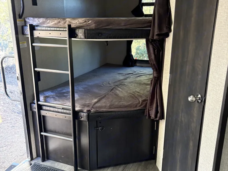 * Comfortable layout with bunk beds, a private bedroom, and generous living space