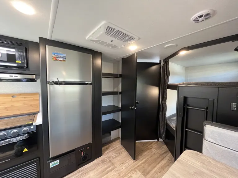 Imagine exploring nature, water parks, enjoying BBQ’s and cold drinks, or curling up around a campfire while roasting s’mores. Our brand new 2022 Black Label TT has tons of room for your family and friends to do just that. Make memories. Our travel trailer is the ultimate camper, with double entry and access to the bathroom from outside. The double bed bunk, with ladder, provides extra sleeping rooms for kids and adults. The modern custom kitchen, oversized full pantry and extra-large U-shaped dinette with full length drawers give you more than enough storage for camping gear and supplies. The exterior will provide a great entertaining space with the exclusive Cherokee camp kitchen, exterior speakers and 43 inch TV can be brought outside and inMaking memories with family and friends is just a click away!No power at your site? Site won't allow to run generator at certain times? or need to use the microwave? Don't worry we got you!We just did a major upgrade to the RV Electrical system with High End Victron components! Use AC Appliances on batteries!3000w Invertor