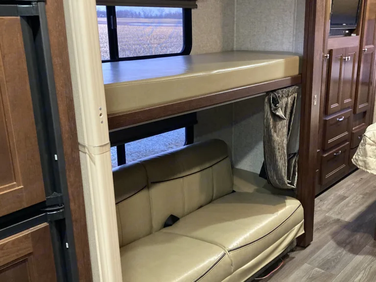 Comes equipped with 3 TV’s, Plenty of interior and exterior storage, 3 burner gas top stove, stainless steel sink, shower, queen size bed, bunk beds, dinette and couch.