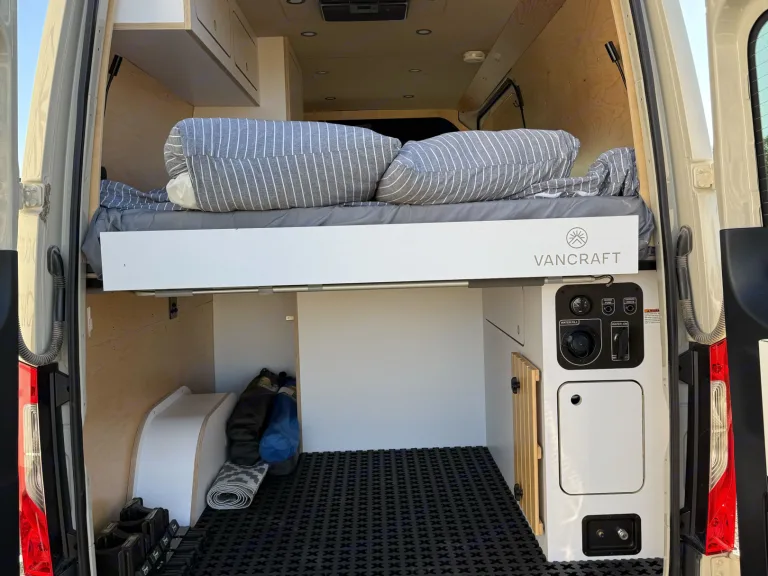 Get ready to explore without compromise—whether you’re chasing spring wildflowers, summer lakeside sunsets, or winter snowfall. This rig is built to take you there.Why this van stands outBased on the Mercedes Sprinter 144″, this van delivers superb efficiency around 20 MPG, giving you more range for your adventures.Built on a robust AWD platform to get you confidently off the beaten path and into the wild.Compact and smart at ~19′ in length—easy to drive, access, and park—yet ready for big-time adventure.Designed for four passengers and comfortably sleeps two to three, making it perfect for couples, small families, or friends.Inside the vanA 6″ memory-foam mattress ensures restful nights—no hassle, just comfort.Premium leather bench seating with lap belts keeps your crew comfortable and safe on every leg of the journey.Clever space-saving design: the “Stow & Go” ottoman doubles as extra seating, hidden storage, and even optional cassette toilet housing.Full kitchen setup: modern sink + induction stovetop + roomy fridge/freezer combo, letting you cook meals anywhere you roam.Extra thoughtful touches such as the passenger-seat swivel mean you can turn the cabin into a livable space when stopped.Gear & storage readyMassive 70 cubic-foot garage space: with 35″ of clearance for mountain bikes and a full 6′8″ depth for skis, boards, and more—your gear comes along happily.Outdoor hot-water shower in the garage: rinse off after a hike or paddle and keep things clean on the move.Modular roof-rack system and upgraded gear-storage options make this a van that keeps up with your lifestyle.Exterior & performance featuresBuilt to withstand rugged terrain: outfitted with durable 32″ all-terrain Yokohama tires, a protective hood wrap, and integrated light pods for early starts or late-night arrivals.With ~9.5″ ground clearance and the advanced AWD system, you’ll have control on dirt, sand, snow or pavement.Tow-ready: up to ~5,000 lbs capacity, so you can bring trailers, toys or extra gear.Ladder access to the roof for gear retrieval or just the view from on top.Systems & off-grid capabilityLarge 40-gallon fresh water tank means fewer stops and more time exploring.Powerful lithium-ion battery bank with dual-input charging (via solar or engine) for true off-grid days.Climate-ready: diesel heater, four-season insulation, optional off-grid A/C — come heat or winter chill, you’ll stay comfortable.Premium materials throughout: white-oak counters, maple-paneled walls, commercial-grade laminate cabinetry, and weatherproof vinyl flooring to handle real adventure.What that means for your tripWhether you’re headed into national parks, chasing remote beaches, or just swapping the city for forest roads, this van gives you comfort + capability + freedom. You won’t be sacrificing daily-drive ease for adventure-mode performance. You’re renting a rig that flows seamlessly between grocery-store runs and two-week mountain expeditions.What's includedAWD