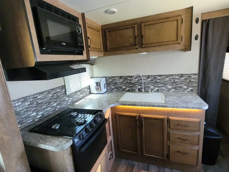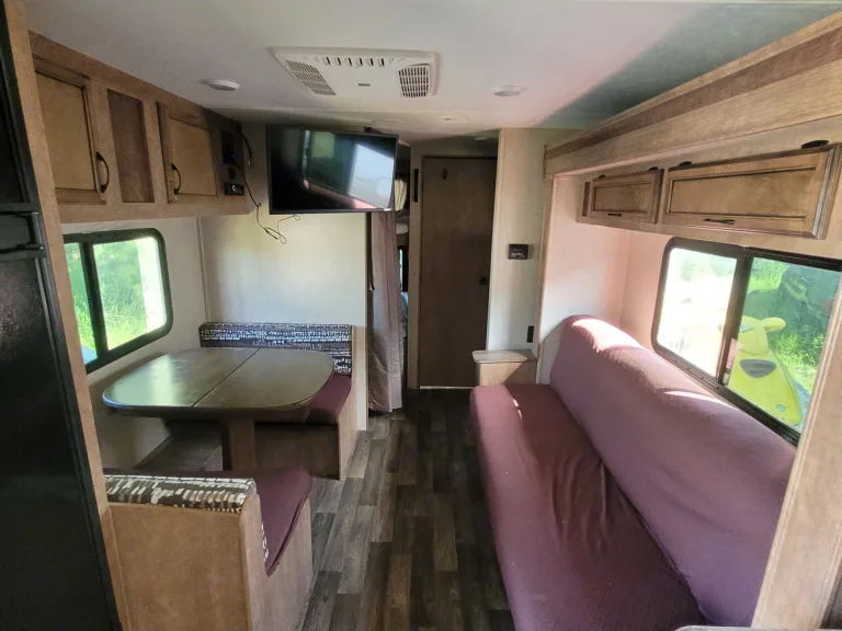 Thanks or considering our rv. This camper is Clean AND Shinny! A nicely laid out 2 bedroom 1 bath with bunk beds and a fold out couch. It is stocked with the basics: linens, towels, paper products, and basic cooking supplies. The propane is full, and we can fill the fresh water holding tank just send a request. The small generator rental fee is a flat rate of $60 per trip. Insurance is available for $189 for most trips.What's included• we stock: shampoo and conditioner, towels, body soap, hand towels, wash clothes, some papers plates and some plastic cups. Pots and pans, dish soap, hand soap trash bags, a broom, and dust pan are included.