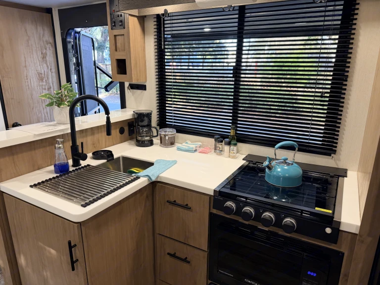 The RV is very user, friendly and fully electric, including the stabilizer system. I provide simple instructions and walk you through everything step by step, so even first-time campers feel confident and comfortable.