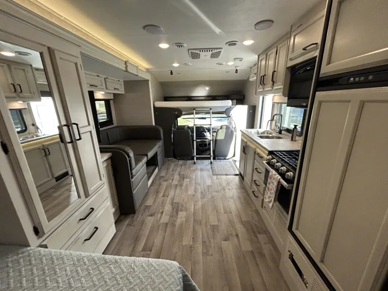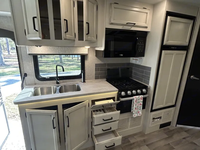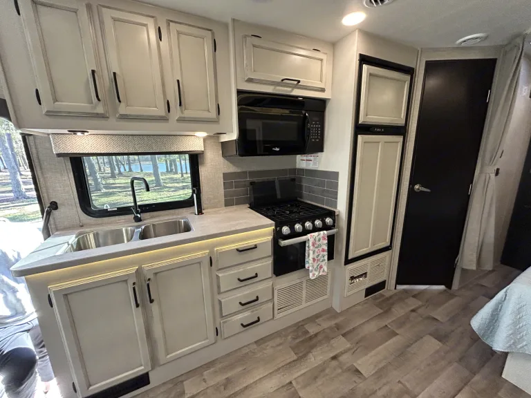 Love to cook? This RV includes a nice size kitchen with a good amount of counter place.
