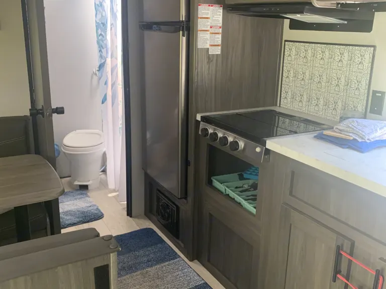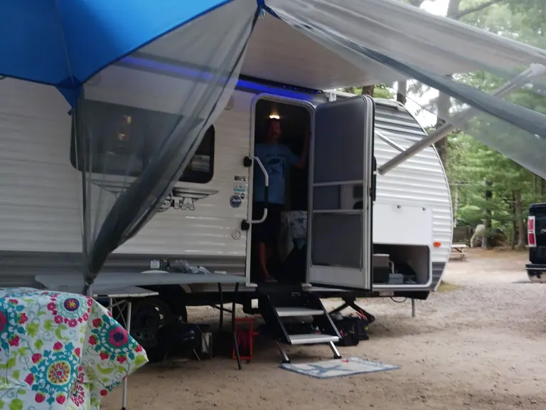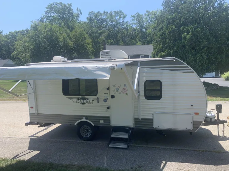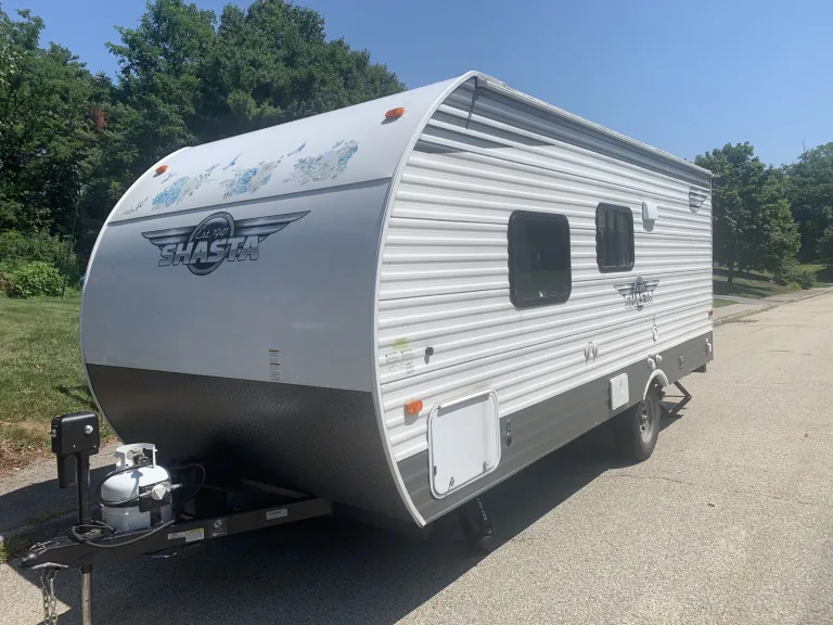 Like new 2021 Shasta 18FQ travel trailer. Everything is new. Stove, heat never used. Air conditioning blows very cold. Tastefully decorated with many amenities, such as small kitchen appliances, dishes, and glasses for six. Sleeps three but includes a two-man pup tent with sleeping bags. Shower is roomy, 3 burner stove with oven and microwave. Solar powered along with propane allows for off grid adventures. Many camping amenities are included, charcoal, and grill, all hoses and electrical connections, outdoor mats, table and chairs. Can be pulled with an SUV, Jeep Cherokee, Chevy Traverse etc. Great for a couple and/or a small family wanting to explore and experience the outdoors in a comfortable setting.What's includedTwo man pup tent, and sleeping bag