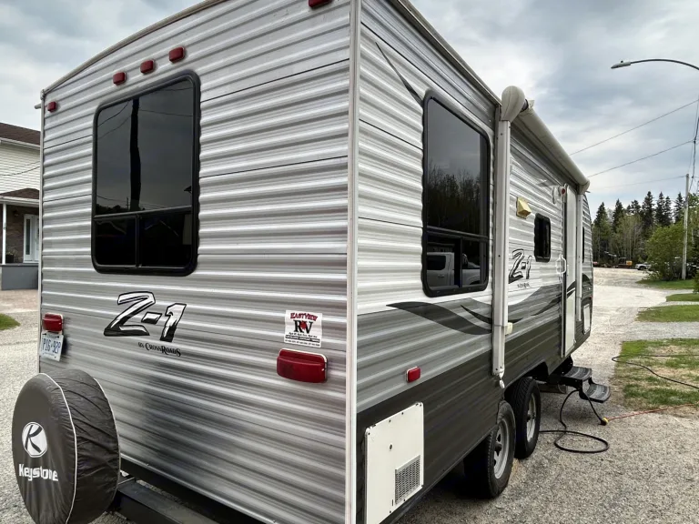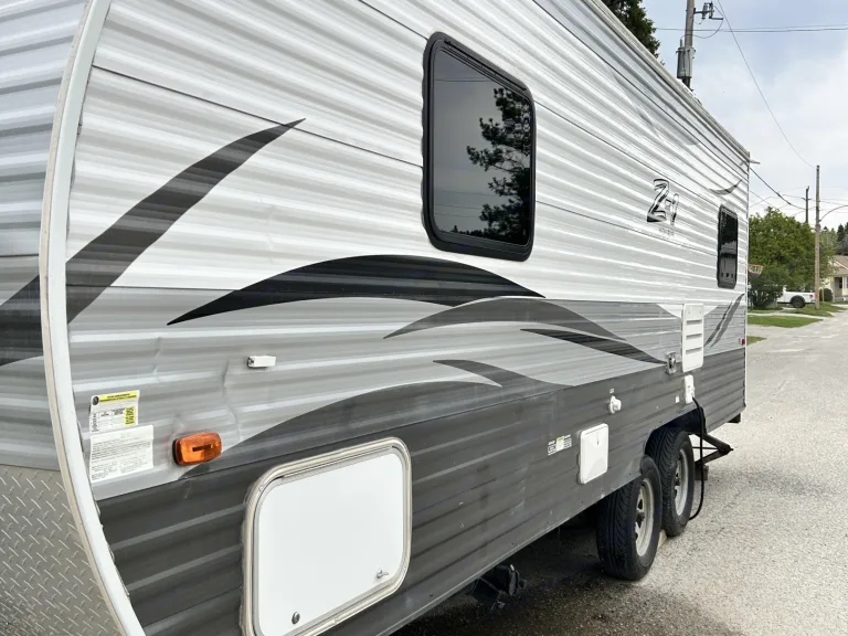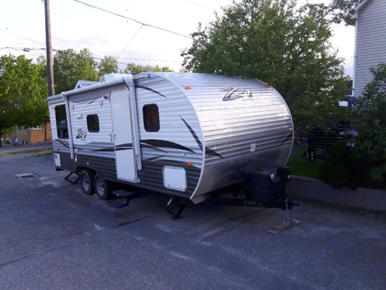 Double axle, Travel trailer with 1 queen bed. Couch turns into a bed as does dinning table.Includes 4pc bath, gas stove and oven, fridge-(electric only) and furnace (electric/propane), The camper operates at it’s best while plugged in or with a generator if no power is available.For your convenience I’ve included: