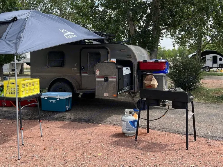 Off road travel trailer with lots of added amenities. You can take this trailer to the desert, the beach, or an RV site and be comfortable at all locations.