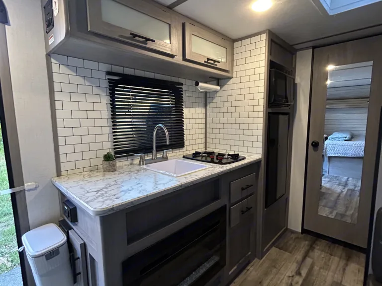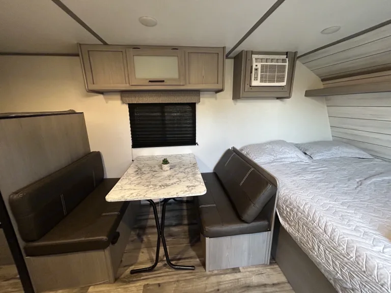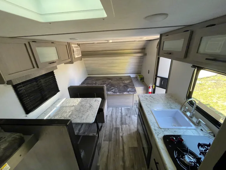 Welcome to our 2023 Coleman Lantern RV travel trailer ready to head out on your next adventure! This trailer fits most campgrounds 21 ft 7in long. The trailer sleeps 5-6, 1 queen bed with upgraded mattress and privacy curtain, a bunk house (with foam toppers for more comfort) and a dinette that converts to a bed (great for 2 small kids). Excellent condition, new tires, extremely clean, and easy to tow with a base weight of only 3,078 pounds Most full-sized trucks and SUVs can handle it.Equipped with a fully stocked kitchen and all of the essentials you’ll need for your getaway.We know you'll enjoy traveling in our RV as much as we do!Important Items:Cleaning: $100 cleaning fee will be charged if the RV is not returned in the same clean condition as when received.Tank Emptying: $50 fee will be charged if the grey and black water tanks are not emptied by renters before return.Inside: Knives, forks, spoons, bowls, plates, cups, 6 cup moka pot for delicious coffee, fresh towels, pillows and fresh sheets, cutting board, BBQ utensils, mixing bowls, microwave, pots & pans, scissors, toilet paper, trash can and trash bags.Outside: 40-feet of sewage hose with clear fittings, 50-ft water hose, water filter,tire chocks, leveling blocks and spare tire.You will need a 2 -inch receiver on your vehicle and round 7-pin connector. Ball size is 2-5/16.We get this question a lot: What is the difference between "black" and "gray" water? Here's the answer: Black water is everything that goes down the RV toilet. Gray water is all the water going down the kitchen sink and shower. Both are stored in separate tanks, but are drained through a singleWhat's includedFresh linens, 4 towels, 2 beach towels. Basic kitchen utensils. Full propane tank and batteries.RecommendationsPlease only use and flush the toilet paper in the camper. It is special toilet paper and other items will clog or damage sensors in the sewer tank.If the campground where you are going ONLY provides connections other than 30 AMP, adaptor can be provided upon request.If you are going dry camping, a generator can be provided upon request for an additional add on cost. Other things to noteNO SMOKING!