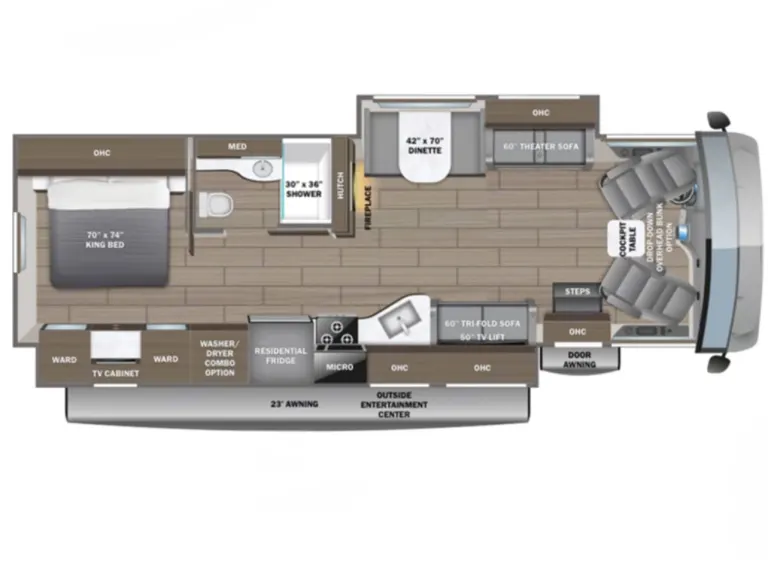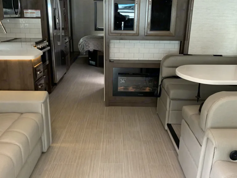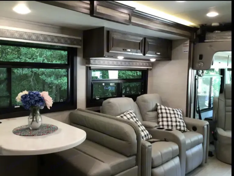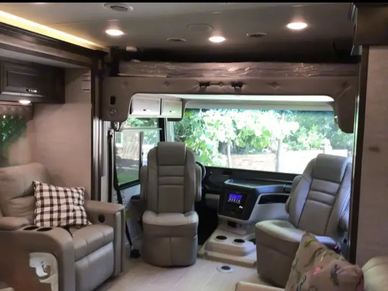 Our Grandchildren named the RV, and we have called it Baboo's Big Bus ever since. This all-inclusive RV offers a master suite that is a spacious sanctuary, featuring abundant storage and a luxurious king-sized bed with generous space on either side. Above the driver and passenger seats lies a cozy full-size bed, easily accessible via a ladder. The sofa transforms into a full-size bed, while the dining table folds down to accommodate one or two dreamers. The electric recliners invite you to relax and enjoy the smart TV, cleverly tucked away behind the love seat. The fireplace creates an ambiance perfect for a delightful fall evening. The bathroom is a serene retreat, complete with a full shower, toilet, and vanity sink, providing ample storage for all your essentials.The kitchen is a culinary haven, boasting water and ice dispensers on the refrigerator door, as well as an abundance of counter space and storage. It will inspire even the most discerning chef, featuring an exceptional stove for cooking and baking. The convection microwave enhances your cooking adventures.The Vision XL 34G embodies comfort and elegance, ready to exceed your expectations!We will supply the RV with Linens, Blankets, and Pillows for the Master Bed, the bed over the front of the RV, and the sofa. The Kitchen will be fully stocked with all dishes, cooking utensils, and cleaning supplies. Our Goal is to make your vacation worry-free. Let us know if there is a special occasion, and we will accommodate with something special to honor the special day.What's included• One set of Linens for all beds